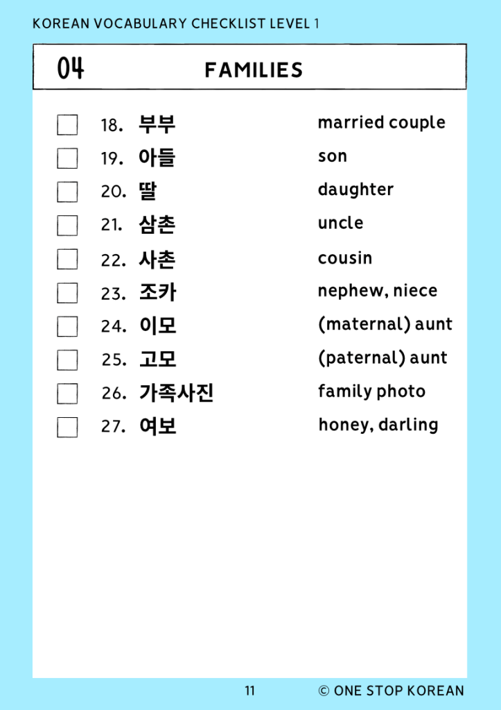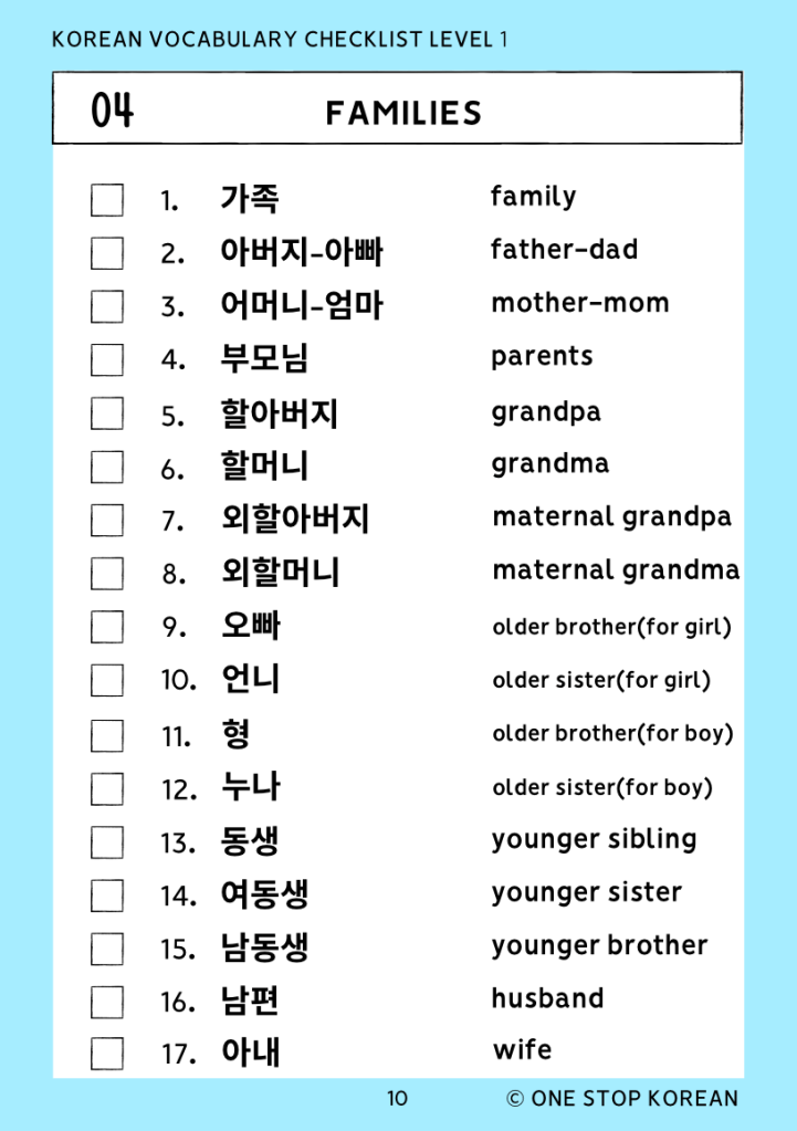 I’ve made a list of basic Korean vocabulary related to family.